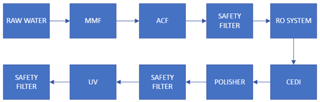 MTI Water Technologies Inc. designed and built a 25 GPM Reverse Osmosis and Deionized water system for a magnetic electronics components and devices manufacturer in the Philippines. This system has a capacity of 25 gal/min which consists of pre-treatment methods namely activated carbon, and multi-media filter systems and treatment methods including Reverse osmosis, CEDI, polisher tanks, and UV Sterilization. The activated carbon filter was utilized to remove organic compounds and extracting free chlorine. The RO system performs removal of contaminants from the feed water. A CEDI system is used to deionize the water for manufacturing use. The polisher and the UV Sterilization is used to further remove impurities and kill any remaining organisms respectively. MTI helped the client realize cost-saving opportunities and cost effectiveness in its manufacturing process while ensuring compliance in quality standards.